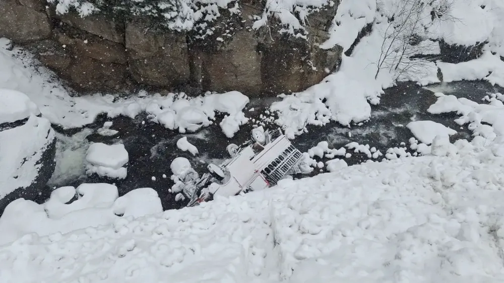Gümüşhane Kürtün-Tonya kara yolu Süme Mahallesi Kalebaşı mevkisinde yaşanan kazada, Özkürtün beldesine giden 27 yaşındaki Ekrem Sancak yönetimindeki 61 VA 489 plakalı kamyonet, karla kaplı yolda kontrolden çıkarak dereye yuvarlandı.
