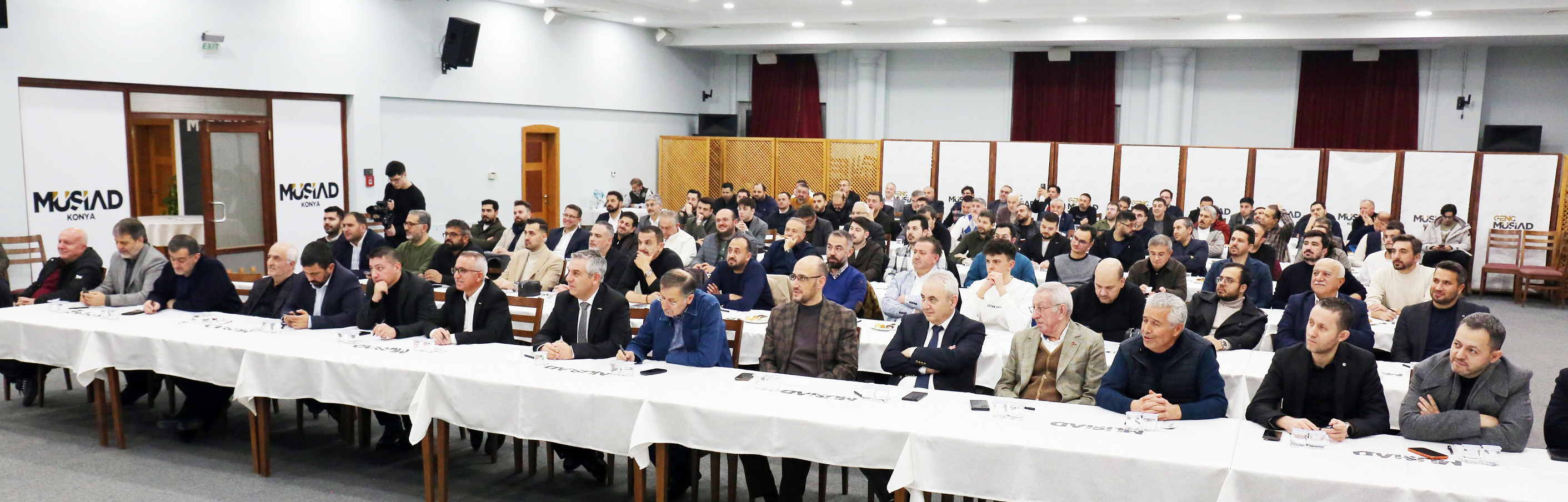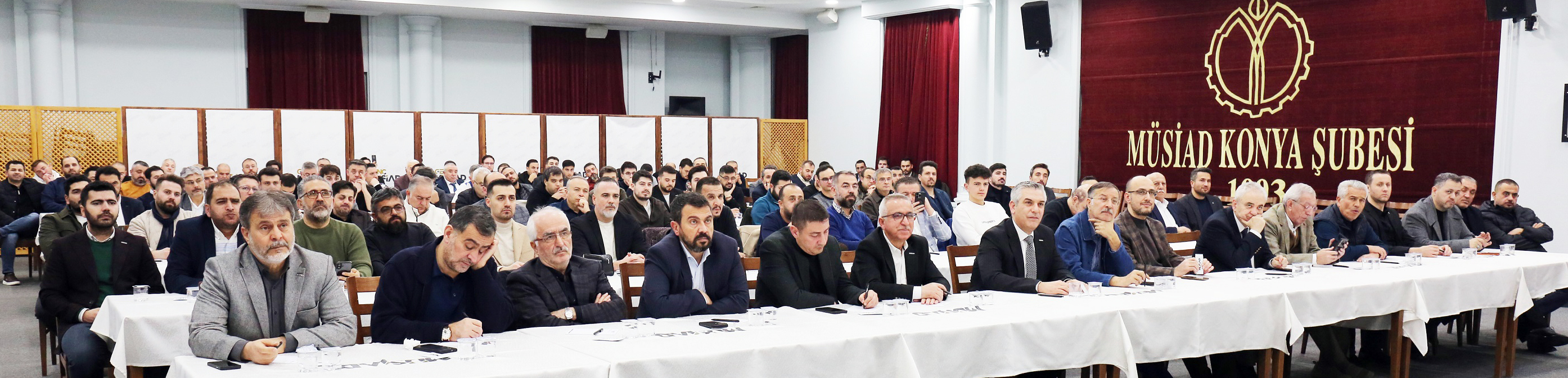 MÜSİAD Konya Şubesi tarafından düzenlenen Cuma programında, “İş Dünyasında2025’in Değerlendirmesi ve 2026’da Ekonomik Beklentiler” başlığı altında ekonomi gündemi masaya yatırıldı. Konya Ticaret Odası (KTO) Başkanı Selçuk Öztürk’ün konuk olduğu programda, küresel ekonomide yaşanan gelişmeler, Türkiye ekonomisinin mevcut durumu ve Konya özelindeki ekonomik göstergeler kapsamlı şekilde ele alındı.