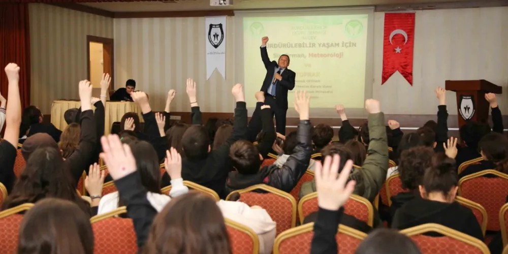 Meram Belediyesi İklim Değişikliği ve Sıfır Atık Müdürlüğü ekipleri, 18 Mart Geri Dönüşüm Günü, 21 Mart Ormancılık Günü, 22 Mart Su Günü, 23 Mart Meteoroloji Günü ve 30 Mart Sıfır Atık Günü kapsamında Mehmet Beğen Ortaokulu’nda geniş kapsamlı bir farkındalık programı düzenledi. Etkinlik kapsamında, çevreye duyarlı bireyler yetiştirmek ve doğaya karşı sorumluluk bilinci kazandırmak amacıyla öğrencilere çeşitli konular anlatıldı. İklim değişikliği ve sıfır atık konusunda M. Yıldırım Gündüz, su, orman ve toprak konularında ise Namık Ceylan bilgilendirici sunumlar gerçekleştirdi. Öğrencilere çevre kirliliğinin dünyamıza verdiği zararlar, sıfır atık uygulamalarının önemi ve suyun sürdürülebilir kullanımı gibi hayati konular aktarıldı.