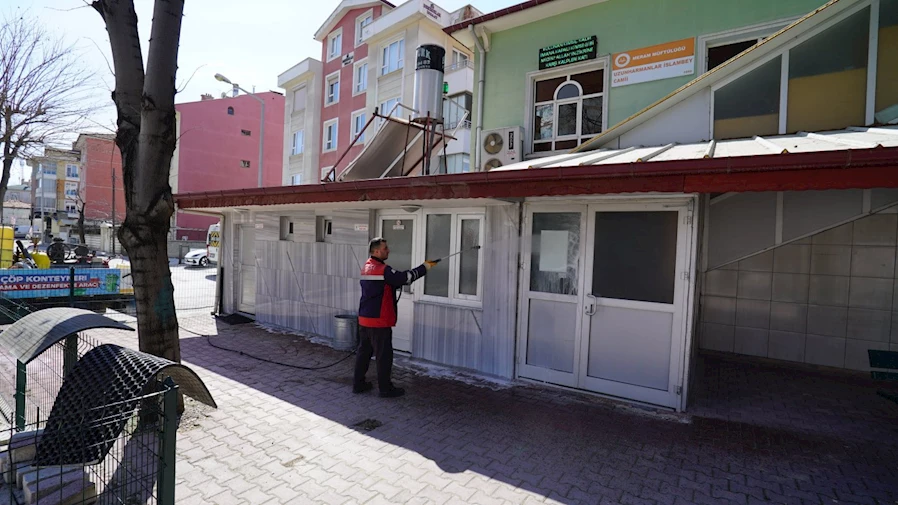 Belediye ekipleri, cami bahçelerinde bir taraftan genel temizlik yaparken diğer taraftan da çevre düzenlemeleri kapsamında çöp toplama, süpürme ve yıkama işlemleri gerçekleştiriyor. Ayrıca, oturma alanları, şadırvanlar ve abdesthaneler de detaylı bir şekilde dezenfekte ediliyor.