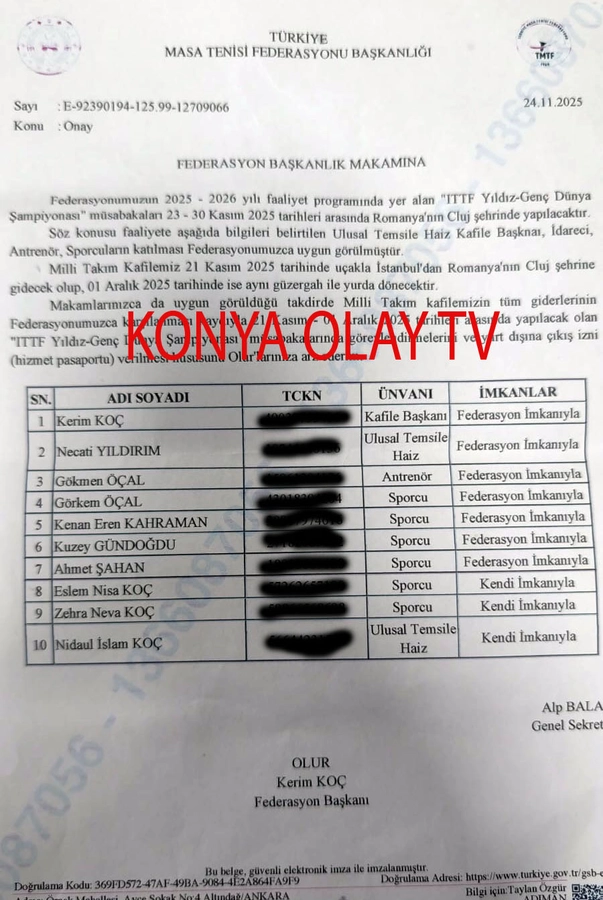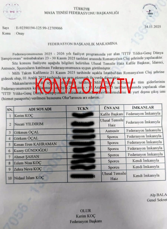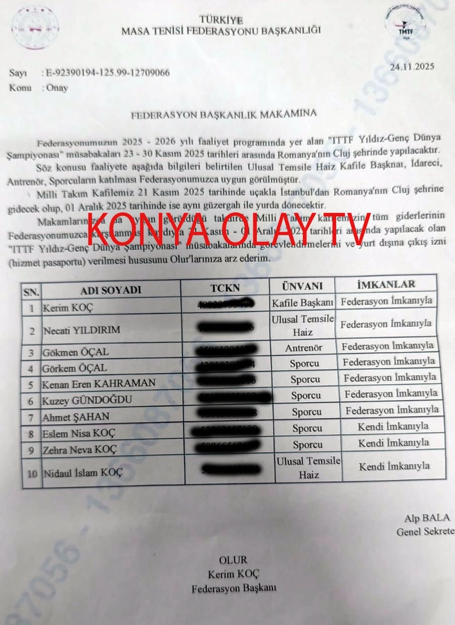 Kadınlar kategorisinde Türkiye’nin herhangi bir katılım hakkı yokken, iddialara göre Türkiye Masa Tenisi Federasyonu Başkanı Kerim Koç, organizasyon için hazırlanan kafile listesine ailesini de ekletti!